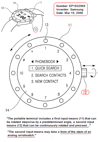 that Samsung patented a digital crown, along with their rotating crown bezel, back before even the iPhone was known.