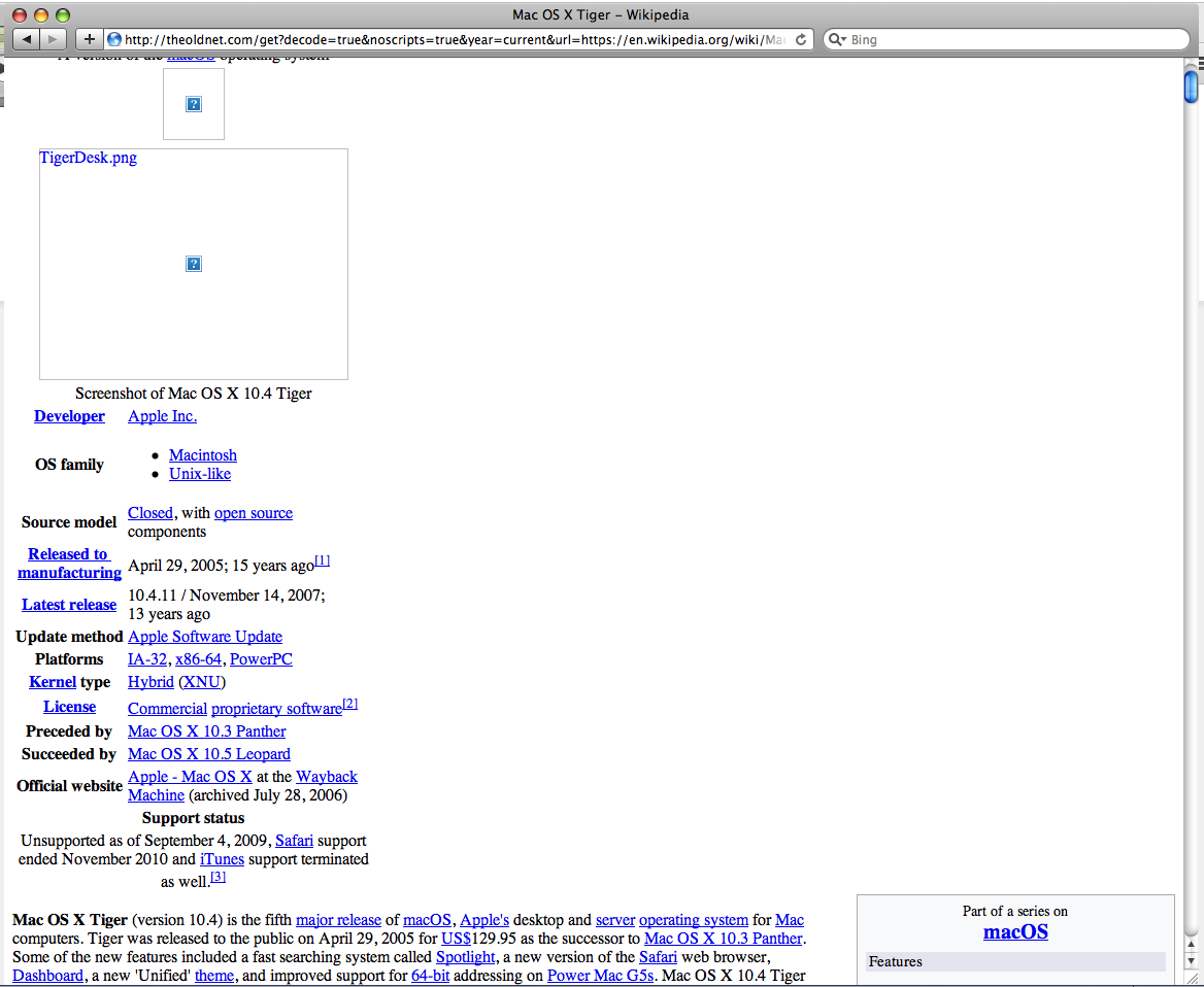 I have just discovered a solution for Leopard WebKit's new roadblock concerning everyone's favorite freely available public information resource, courtesy of theoldnet.com. Seeing as how I do not recall it ever gaining any discussion here, I figured that it was worth a share.