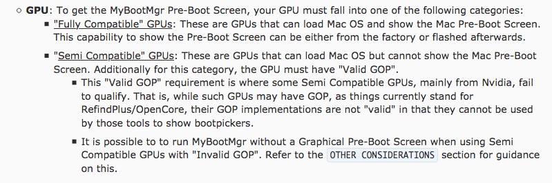 Ok thank you. It sounds then like perhaps I didn't make the best choice of graphics card - I chose a Kepler card because those have Metal but also work under El Capitan, which I want to keep as a back-up as it's officially supported; I know that modern AMD cards can't do El Capitan. I believed that I could still get a boot screen through OpenCore/Refind through.