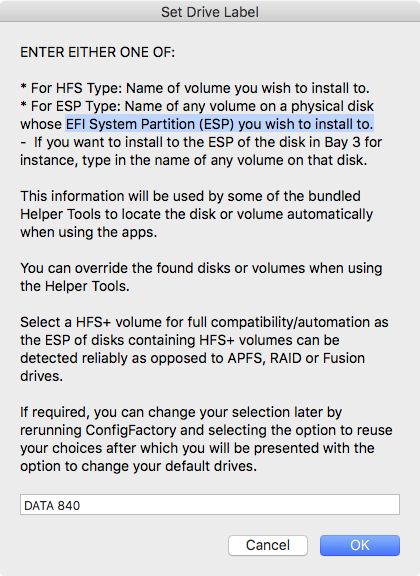 I ran into an issue that's really more macOS related vs script related but thought I'd post here and perhaps get some assistance. I totally get why not to instal to the same drive as your boot OS, but I don't really need another drive or want to waste a bunch of space on a RF/OC drive. Thought I had the ideal solution to use a 2GB Adata SATA flash drive from a thin client. However when I went to format it HFS+, it didn't create an EFI volume, so DeployESP kept generating an error and closing. I then used Terminal and DiskUtil to create a FAT32 partition, named it EFI, and formatted the remaining space as HFS+. This allowed DeployESP to complete but it only partially booted after soft blessing and then hung. I suspect this relates to the FAT32 partition not being identified as a true EFI type partition. Did a bunch of research to force create a true EFI partition, but couldn't find a way using diskutil or by attempting to clone another drive's EFI partition using the dd command. I did locate an article explaining that macOS will format volumes 2GB and less without EFI since they aren't really large enough to contain a bootable macOS (at least that was the reason given).