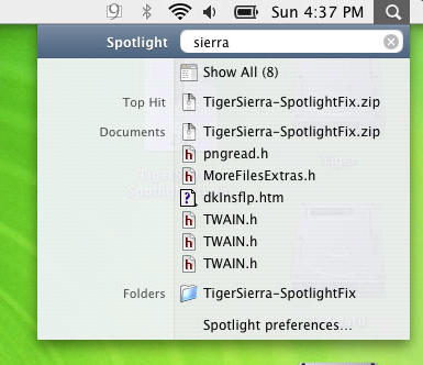 Download the attached TigerSierra-SpotlightFix.zip file, which contains four .tiff files, copy them into /System/Library/CoreServices/Search.bundle/Contents/Resources/ replacing the existing. I found that Finder didn't allow this copy even after authenticating, so you may need to use "sudo cp" in Terminal.app to put them into place.