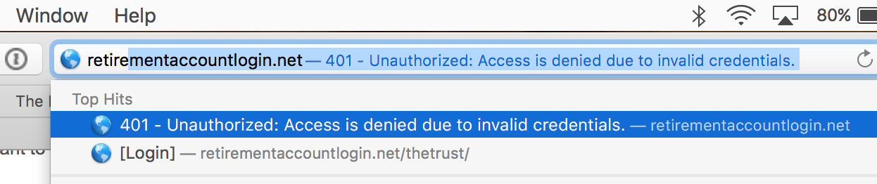 Greetings. I've been scratching my head over this and it's aggravating. I need to remove a "Top Hits" entry. As seen from the attached image, when I start typing my retirement account, there are two item that show up. I want to remove the first item as it directs to an invalid page.