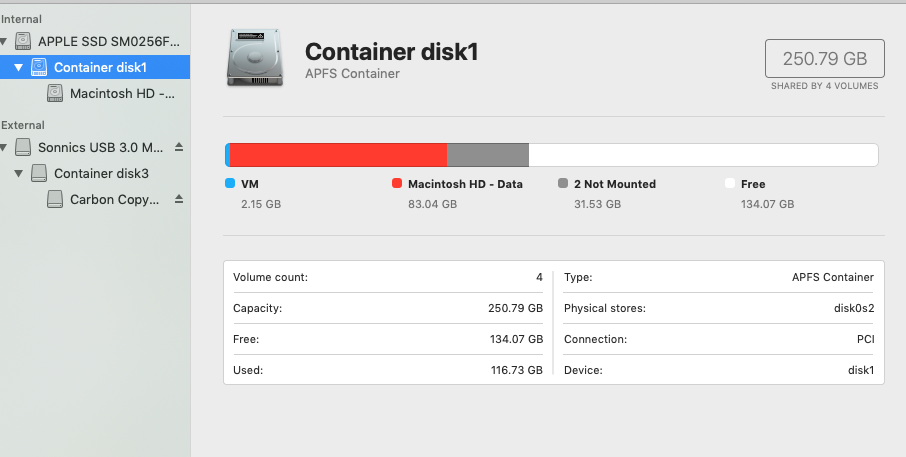 I run Mojave on a 2014 Mac Mini and would like to upgrade to Monterey but (See pictures) the hard drive is inside a container file and I've no doubt that will cause problems. The same applies to my backup file. Is there any way of removing the container files?