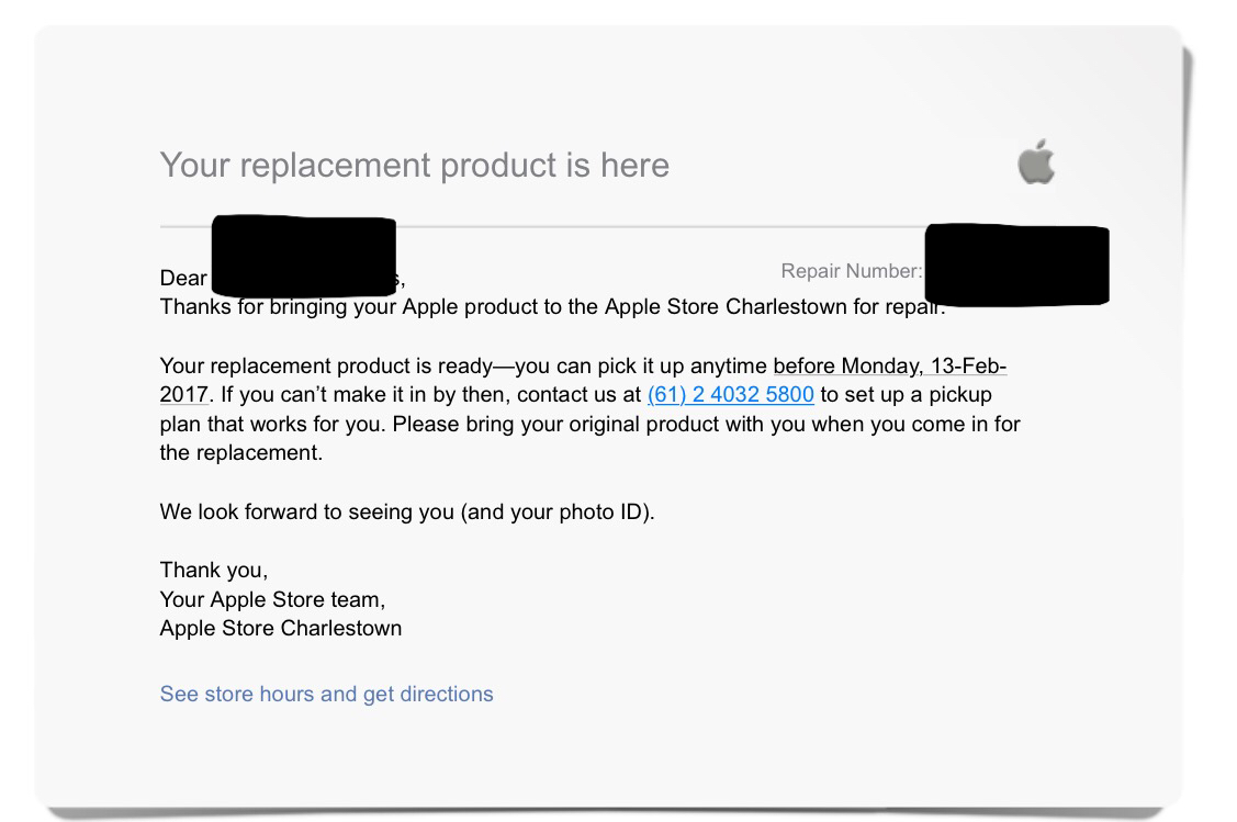 Genius Bar appointment advises hardware issue so will need to be sent off for repair over 10 days. I said I would bring it back in a few days later. Do they repair it just replace? Anyone had similar experiences?