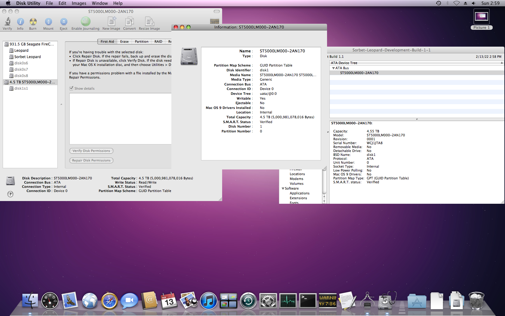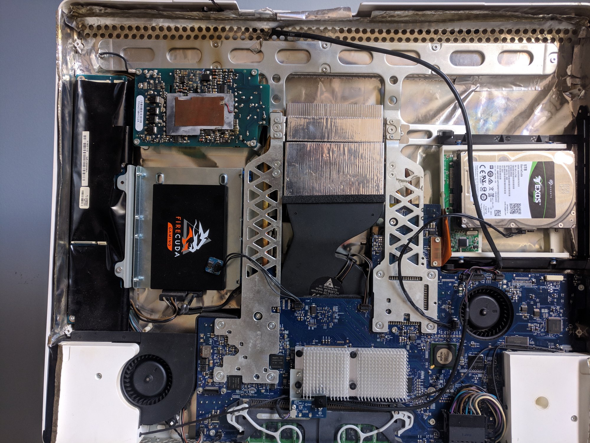 Since this latest iMac G5 it's a pain to disassembly I was objective with my test. I took the 5TB drive (It's a thick HDD considering the form factor) that it's in my Raspberry Pi4 NAS and take the chance to see if it's gonna recognize it as it was (because it is formatted in BTRFS I didn't expected to work on Leopard, but in Linux I did) and after the first boot it worked. OSX recognized the capacity and Void Linux was able to mount it.