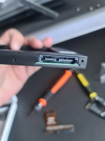 Does anyone know what this connection is and where I misght be able to get the adapter to connect to the mini SATA. I have tried googling it and ebay but no luck (but thats probably down to not really knowing what Im looking for). I have attached photos if that helps. The first photo is the end of the lead to the motorboard, the second photo is the back of the caddy itself.