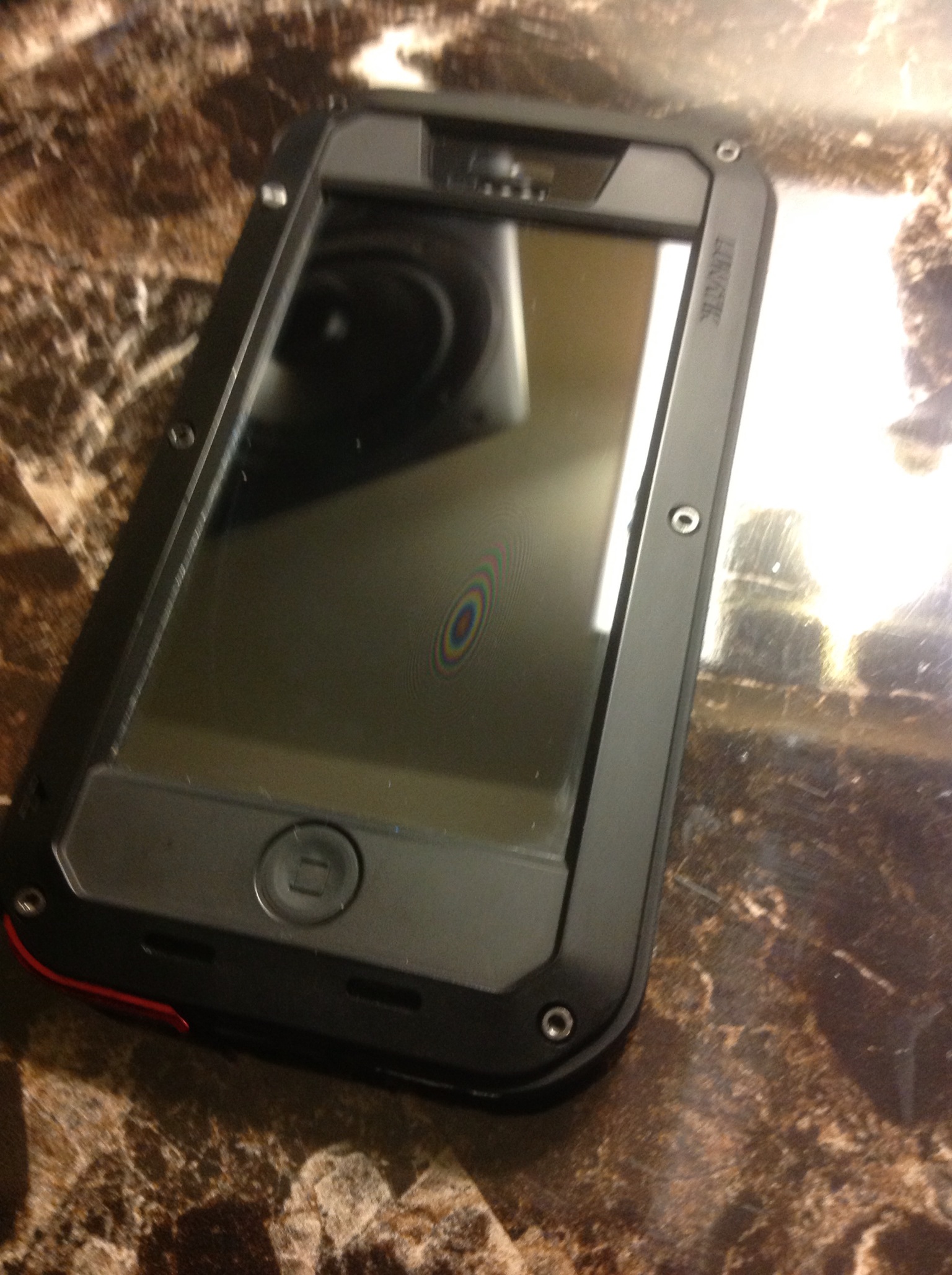 Do you have a screen protector on the phone under it? I heard that causes that rainbow effect