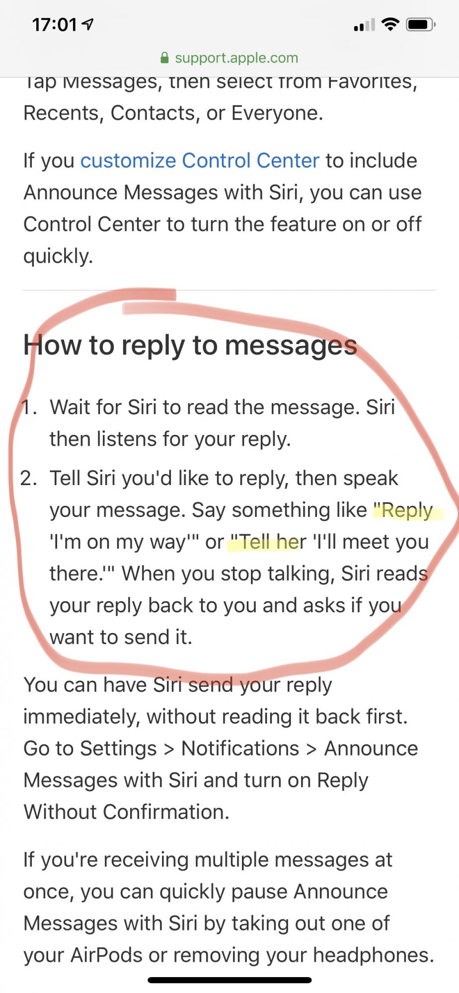 Works a charm for incoming messages but how do you reply? Apple Support says to say, “Reply [speak your reply]“ after the message is read. I’m getting crickets when I try this. I also tried pausing after “Reply” and still nothing. Is this a bug or am I holding it wrong? Any advice would be great, thanks.