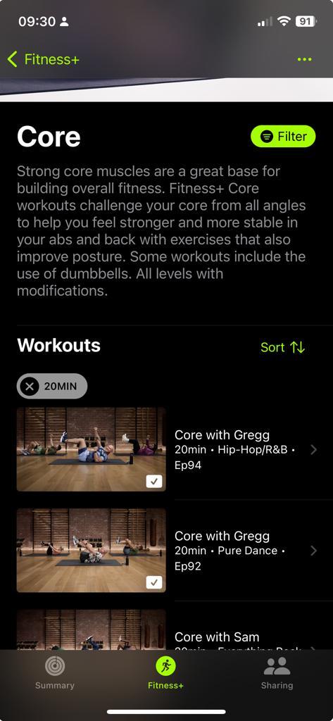 However, I've settled on two workout types that really work for me; Core - 20mins and Strength/Upper Body - 20m. There are about 30 or so for each, from various trainers and music types, and I've worked through them all, though occasionally they release a new one. While I can now pick one at random, it would be nice to go through them all one by one again, but I can't find a way to reset the completion of workouts? I expect I could delete all Apple Health data, but that seems an excessive way to achieve something that appears quite simple.