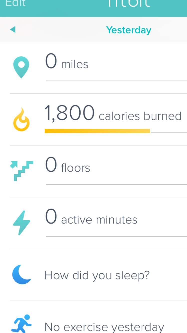 For the same day, with the same body metrics Fitbit reported 1800 calories. I am not wearing a Fitbit at the moment, so this equates to their underlying resting number.