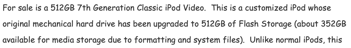 My iPod Classic 7G with 640 GB iFlash displays 596 GB in iTunes (7% "missing")