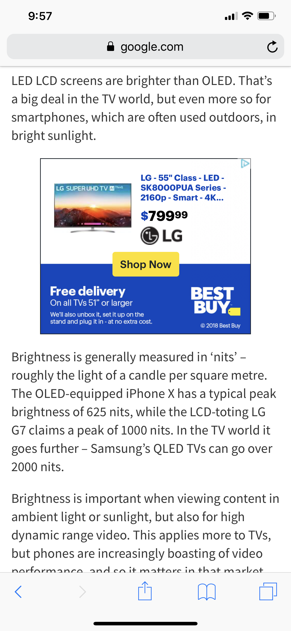 Usually it’s the other way round. OLED is easier to see in sunlight. Be interesting if what you say is true though.