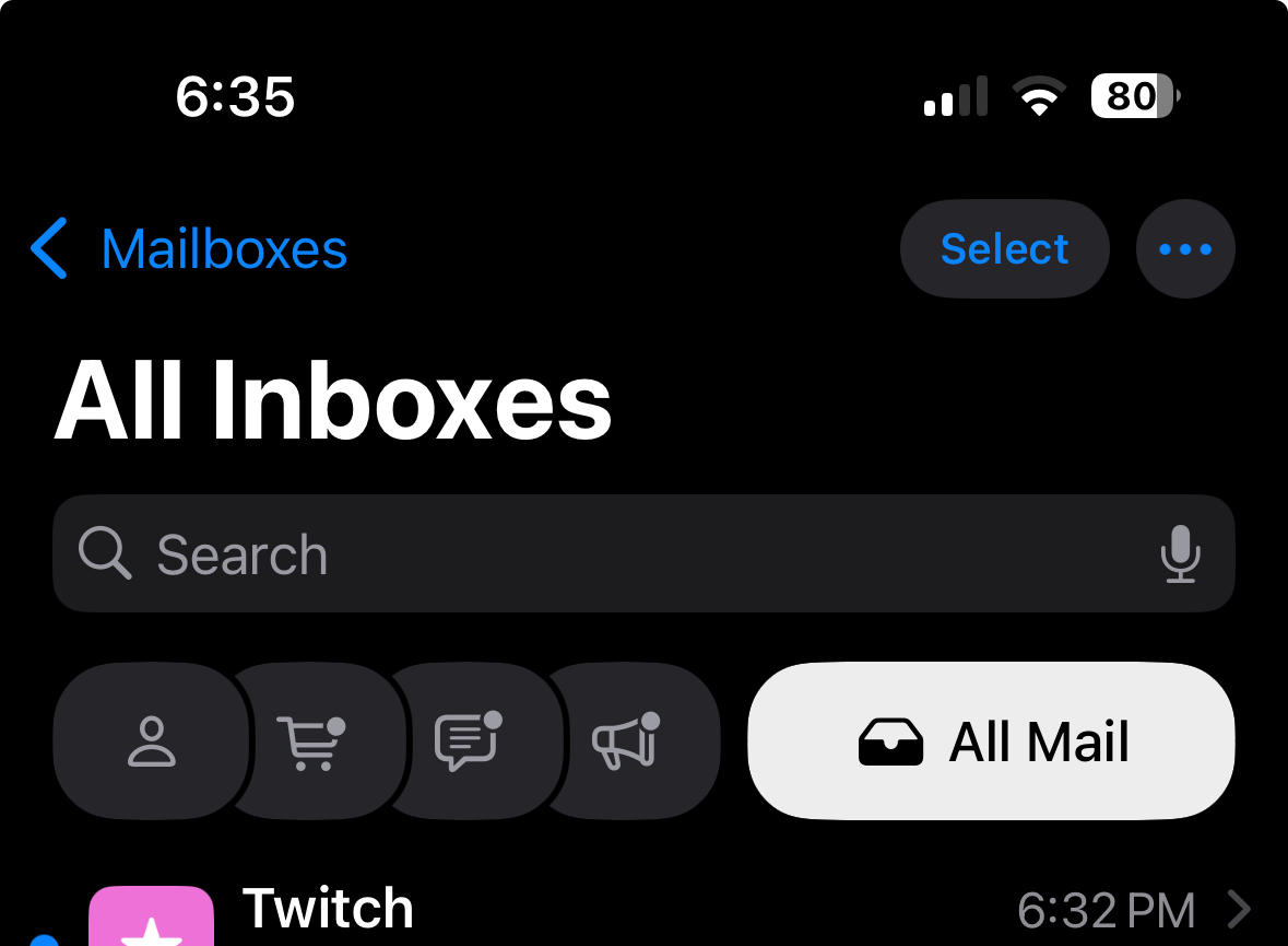 Categories is the default view after updating to the new software, but in the upper right corner of the Mail app, you can swap back to a list view that shows all emails in chronological order, without separation into categories. Devices that have Apple Intelligence support will show priority emails in the Primary inbox, so you can see what's most important first. Emails in the Transactions, Updates, or Promotions section that have time-sensitive information will also be shown in the Primary section.