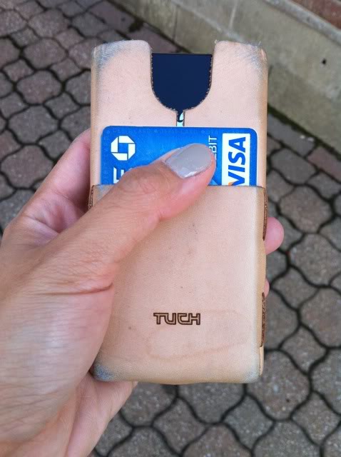 The tabs that hold this together on the interior of the pouch face upwards toward the opening. No matter how hard I tried, at least two of the tabs get scrunched up and create bulges on the side of the case whenever I put the phone in. Too bad. I guess I could glue 'em down....