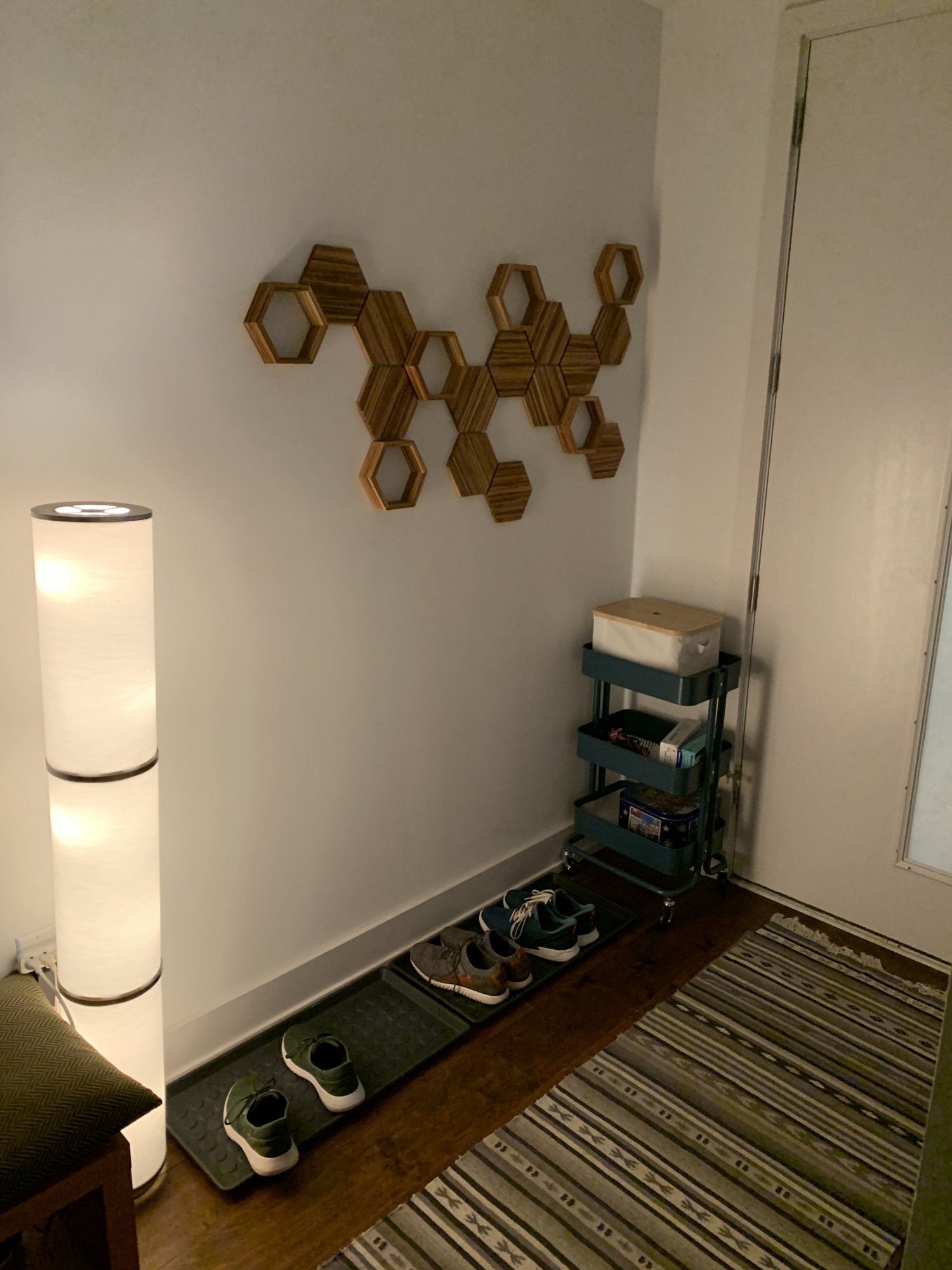 Those nanoleafs are more for mood lighting than lighting something up. if you want more light in that room use a real light That ikea lamp will be way brighter than these to light something up.I think these are the Nanoleafs I finally need to get. We have an entrance hallway that’s a little dark and currently has an IKEA floor lamp. And the showpiece in that hallway are these hexagonal tiles that are made of recycled chopsticks. I think these panels could take the place of the floor lamp and could look really smart there.