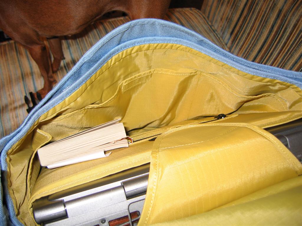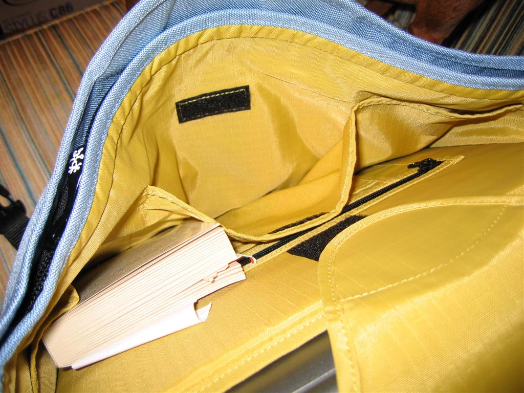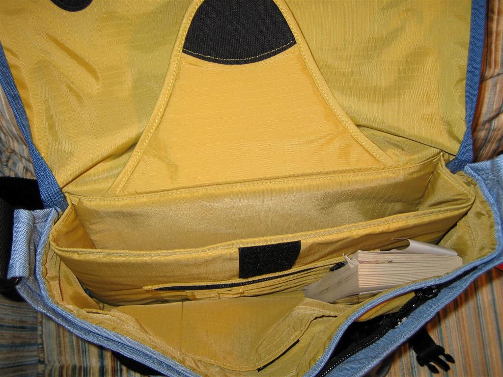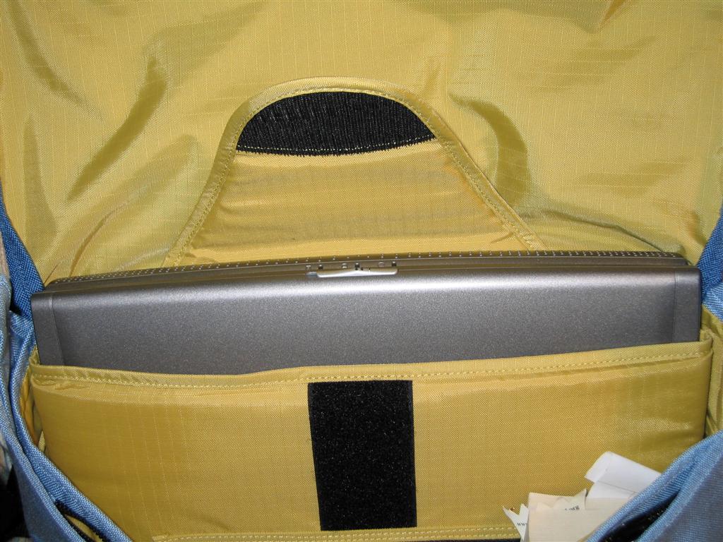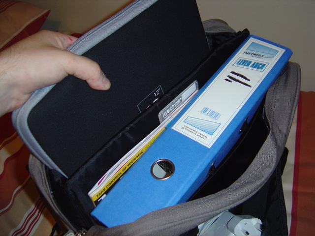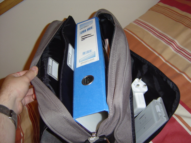 The main compartment houses the padded laptop area (which seems very good as always with AirBags) and another part for folders and books, which is divided into 2 further sections. I managed to fit a pretty good amount of stuff comfortably inside, although I could squeeze in more. As has already been mentioned with some of the other bags I expect it to give a little bit as I use it, so packing/unpacking becomes easier.