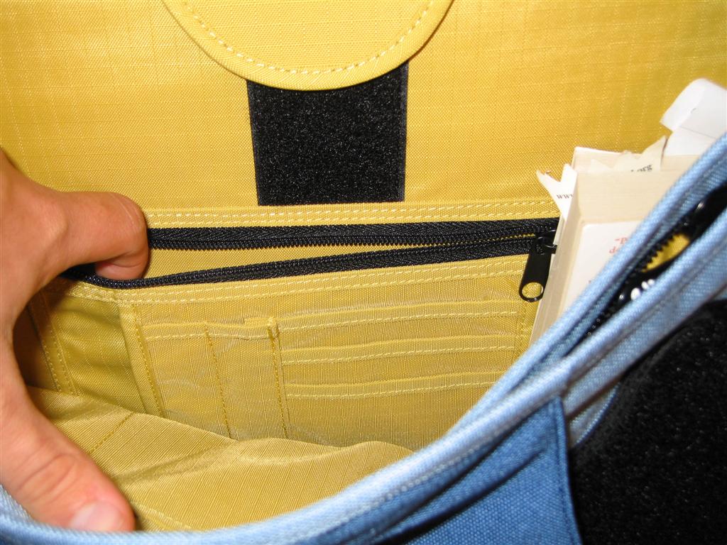 I've managed to have a play around with the bag and so far so good. It looks smart and tough, and feels it too. The very bottom is black, made from that strange smooth rubbery plastic stuff some bags have. There are 1 main large compartment, a front pouch, and even a small side pocket with a keyhook inside to hook your keys into or anything else you want, very handy!