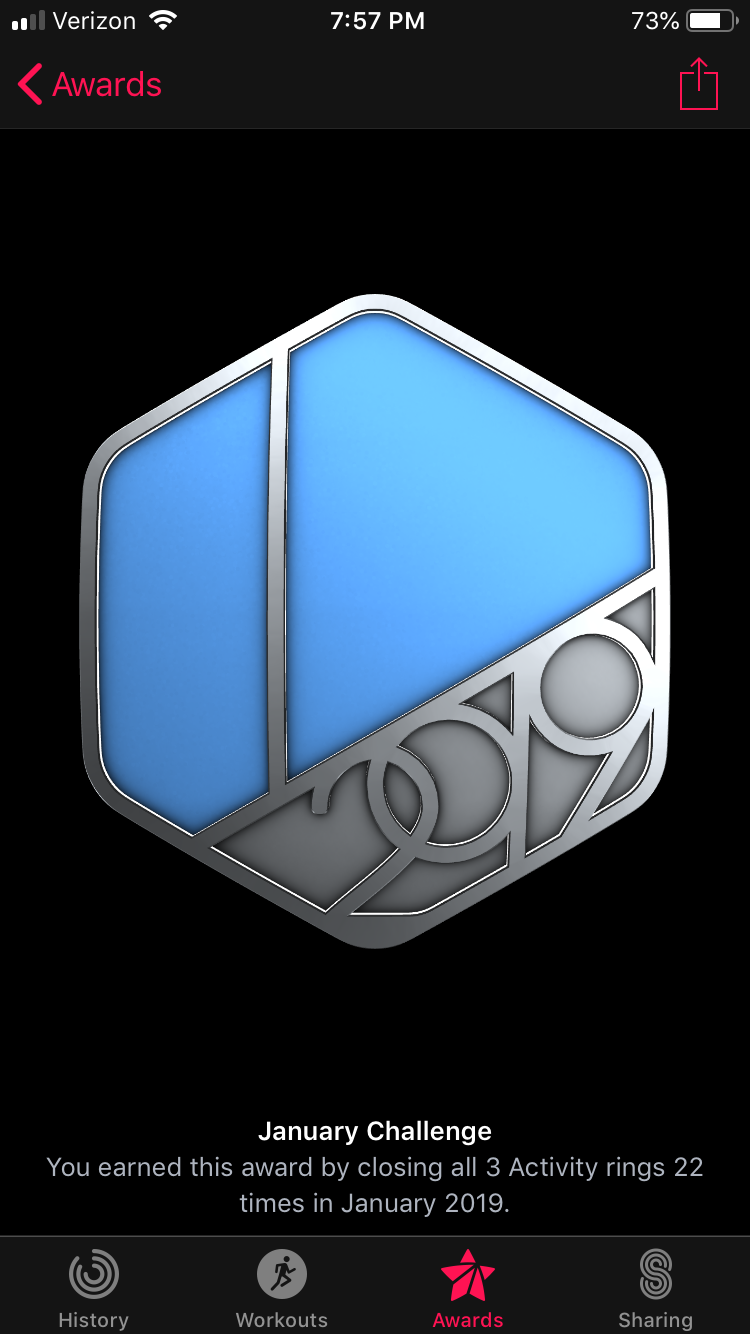 I haven’t gotten a “close your rings x amount of days” in a while, so I’m hoping for one of those. Lately it’s been large amounts of workout minutes, averaging between 115-131 minutes per day, so hopefully no more of those this month!So with January ending Thursday, what is everyone expecting for February?