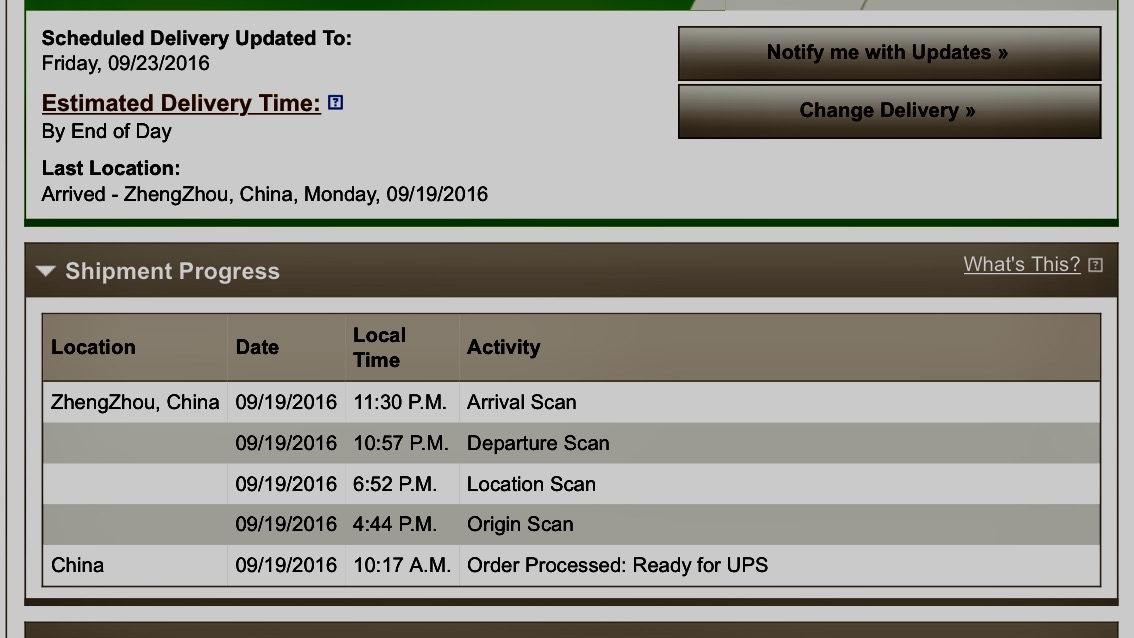 By the last UPS scan. Lots of us had a departure scan out of China, but then right after that another arrival scan in China at 11:30 last night.