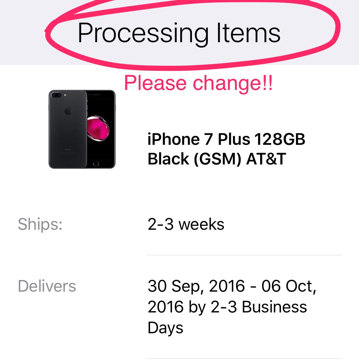 09/23/2016 5:58 A.M. Severe weather conditions have delayed delivery.
