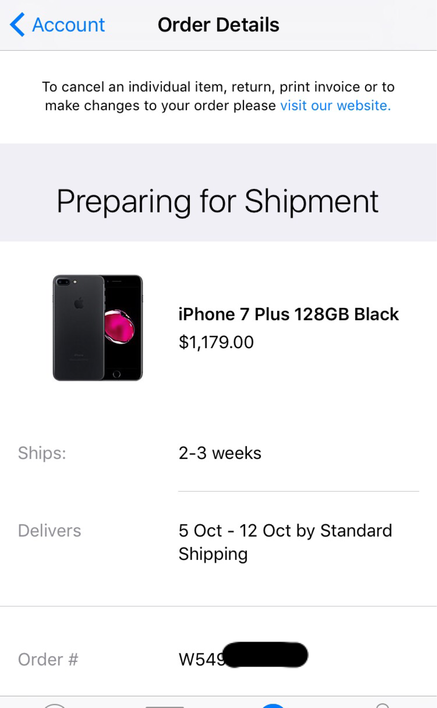 Preparing for shipment! Ordered from Apple 12:50am pst. Att 256gb silver 7 plus.
