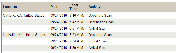 Departed this morning and still hasn't arrived at a destination. I live 25 miles away from Oakland. Hopefully it's not going back to China or Korea.