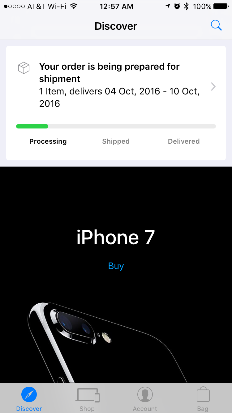 Ordered on Apple app, for AT&T, 128gb JB 7+