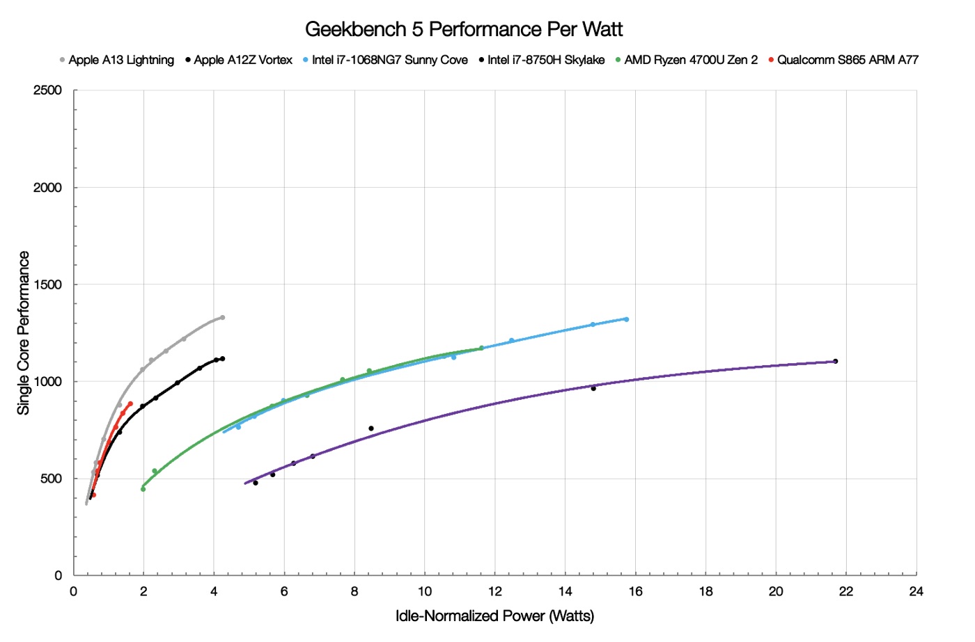 To get to performance level of Apple A13 they need to consume 4x more energy. No wonder when you start doing something CPU intensive MacBook changes to vacuum cleaner..