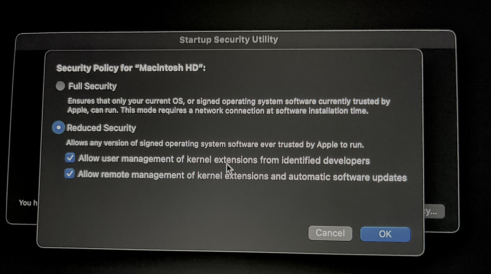 As you can see in the screenshot, I’m running my M1 MacBook in “Reduced Security” mode in order to use applications (e.g. Boxcryptor) that requires a 3rd party kernel extension (e.g. macFUSE). Under normal circumstances, I wouldn’t want to run a device with ‘reduced security’ but what’s the reduced security here? It seems like Apple’s definition of ‘reduced security’ is simply preventing me the owner from using a past Apple signed version of MacOS or preventing me the owner from simply having the option to approve a 3rd party kernel party extension in security preferences. By the way, to get to this security menu, one has to undertake a byzantine 6 step startup option which includes entering your user account password twice.