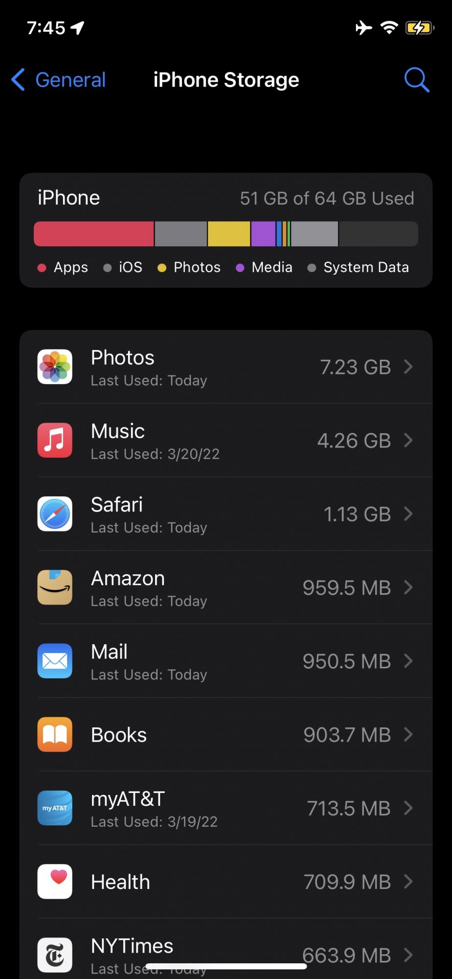 I’ve attached a few screenshots to this post but it looks like the apps that are taking up the most space on my iPhone are photos, music and Safari. I’m not sure why photos is taking up 7.23 GB since I have the ‘optimize iPhone storage’ setting turned on.