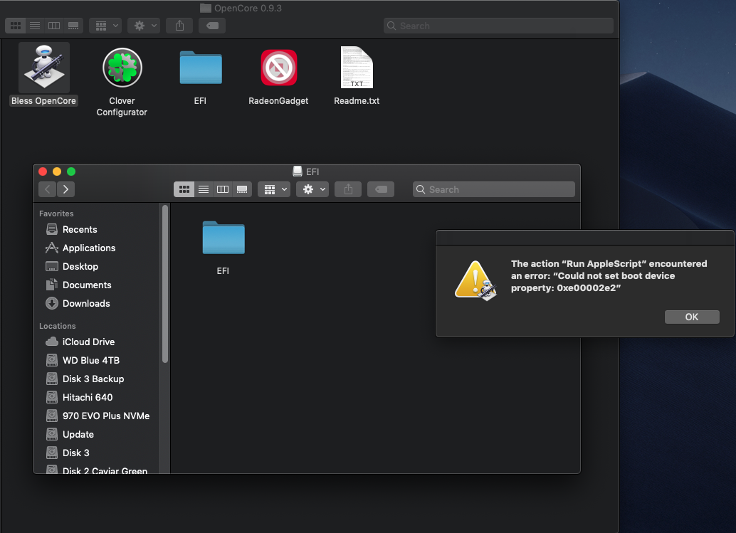 If you are already running my package. Then you don't need to run the bless tool. It's already blessed.Yes it is flashed. Can you explain what you mean? Boot into what? Are you referring to my screen capture above where I'm booted into Mojave thumb drive where MLOC is loaded?