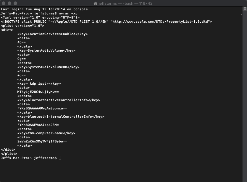 EDIT 2: Typed nvram -xp in Terminal.