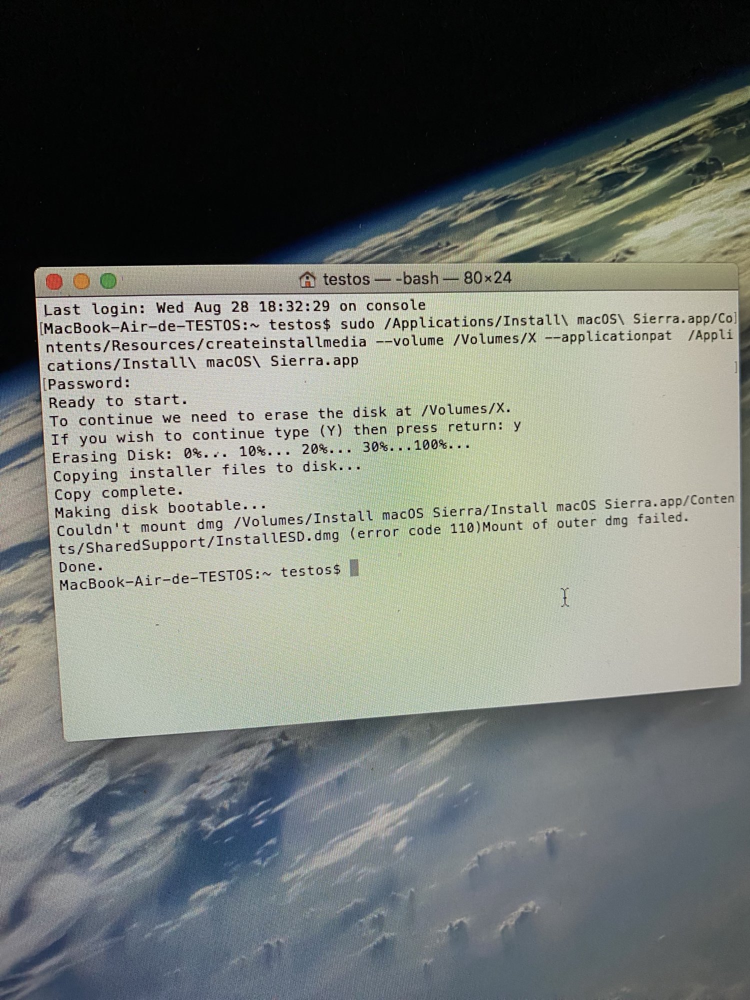Good night, I've been trying for days to create a bootable USB with macOS Sierra and get it to work. I've tried downloading it from the official Apple website and from the Mist app for computers with a silicon processor, but I still haven't been able to create it using either the Terminal (sudo /Applications/Install\ macOS\ Sierra.app/Contents/Resources/createinstallmedia --volume /Volumes/MyVolume --applicationpath /Applications/Install\ macOS\ Sierra.app) or third-party apps (DiskMaker X...). I even installed OS X El Capitan on an old 2014 MacBook Air to see if it was possible to create it from that computer. Can anyone help me or know how to do it? It's a personal matter now lol. Thanks. Best regards.