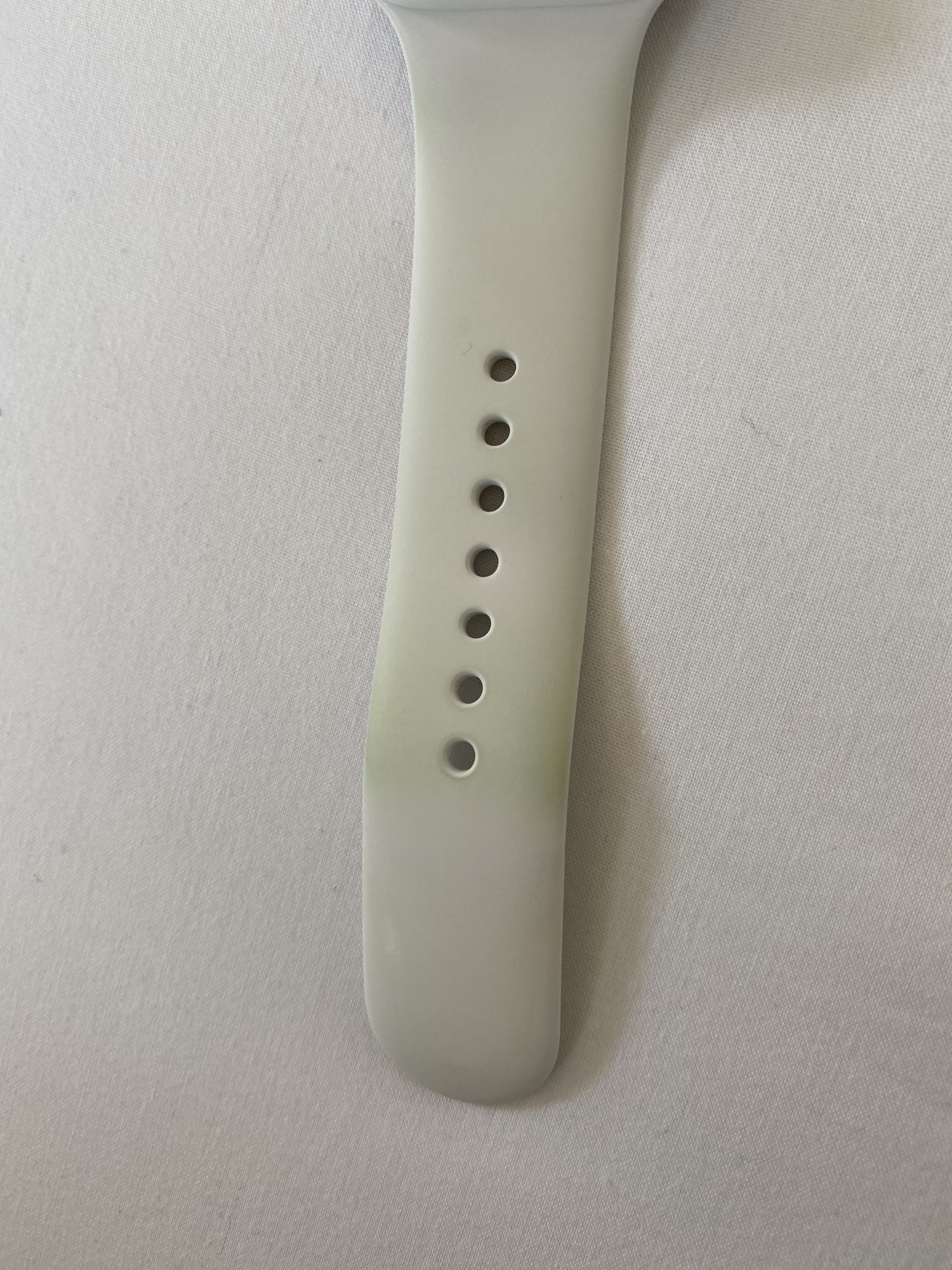 I never found any solution to the discoloration of the bands and tried contacting Apple support for replacement bands which they turned down. For the price of the watch and it having been under Apple Care at the time, I would have thought they would have given replacement bands. It doesn’t take much to cause discoloration.Hello there