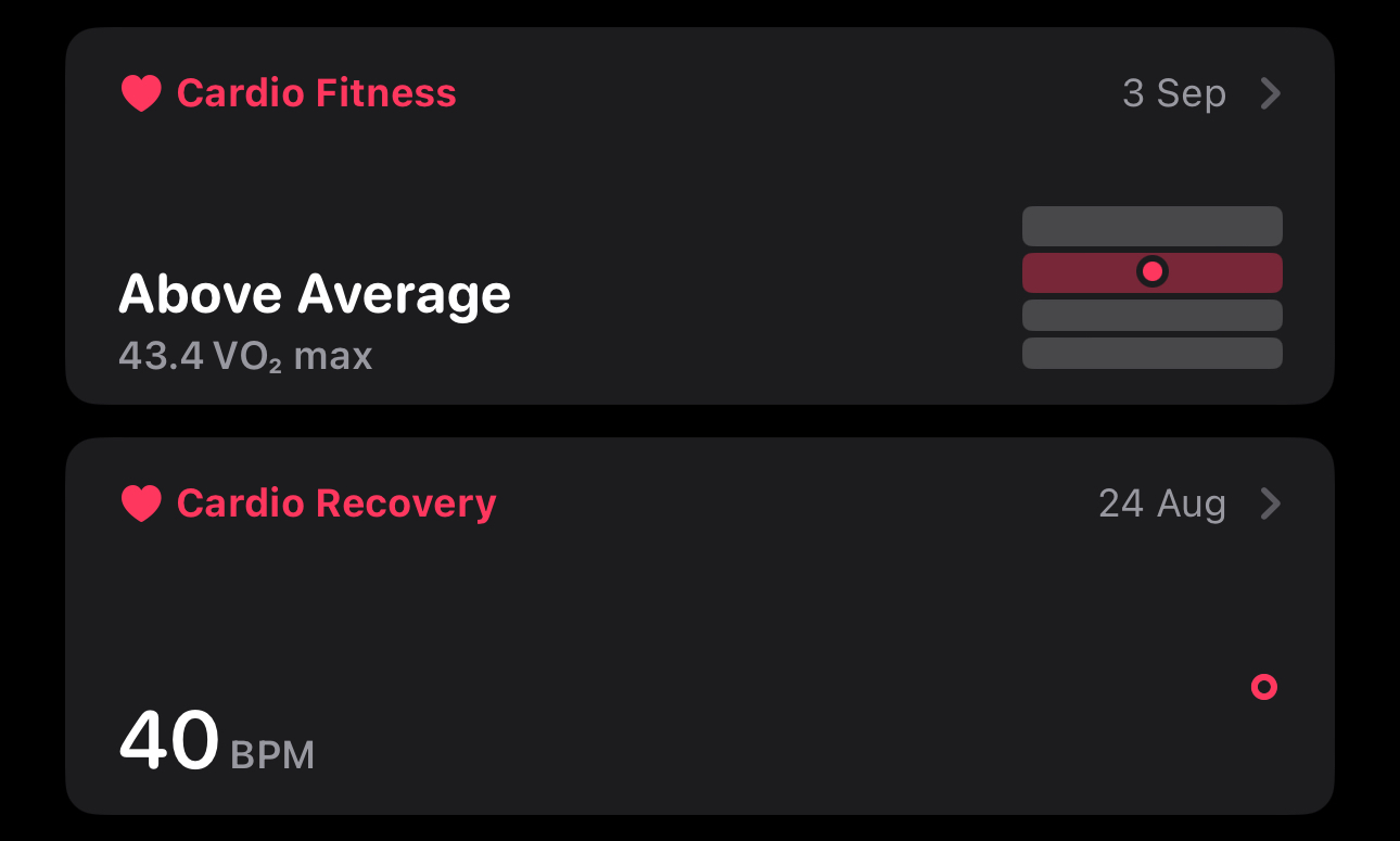 However, there are two that show no consistency in their updates and they are Cardio Fitness and Cardio Recovery. These haven’t updated since 24th of August and 3rd of September respectively.