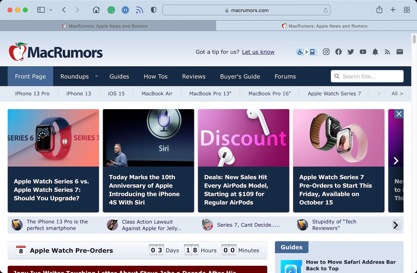 In Safari 15, however, tabs have a new button-like design with a rounder and more defined appearance. Apple has also inverted its shading of tabs, with an active tab now having darker shading and inactive tabs having lighter shading.