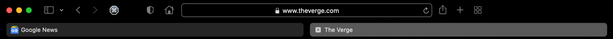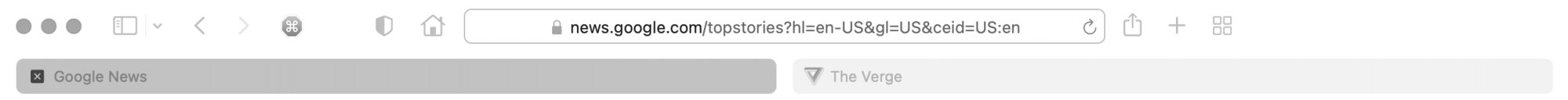 But hey, let's not be theoretical. Let's look at real examples! Here, I've opened just two sites: news.google.com and theverge.com, each in their own tab. The *only* thing I'm going to do differently in these two screenshots is change tabs. Nothing else.