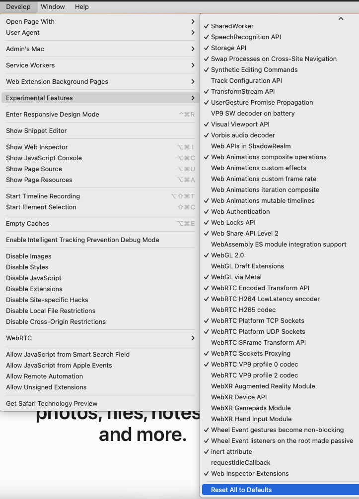 Just tried your suggestion but still getting the same error message.If you modified something in Develop menu – Experimental Features, use Reset All to Default and restart Safari.