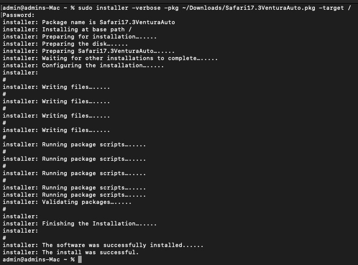 I tried to install Safari 17.3 via Software Update and via Standalone Installer.