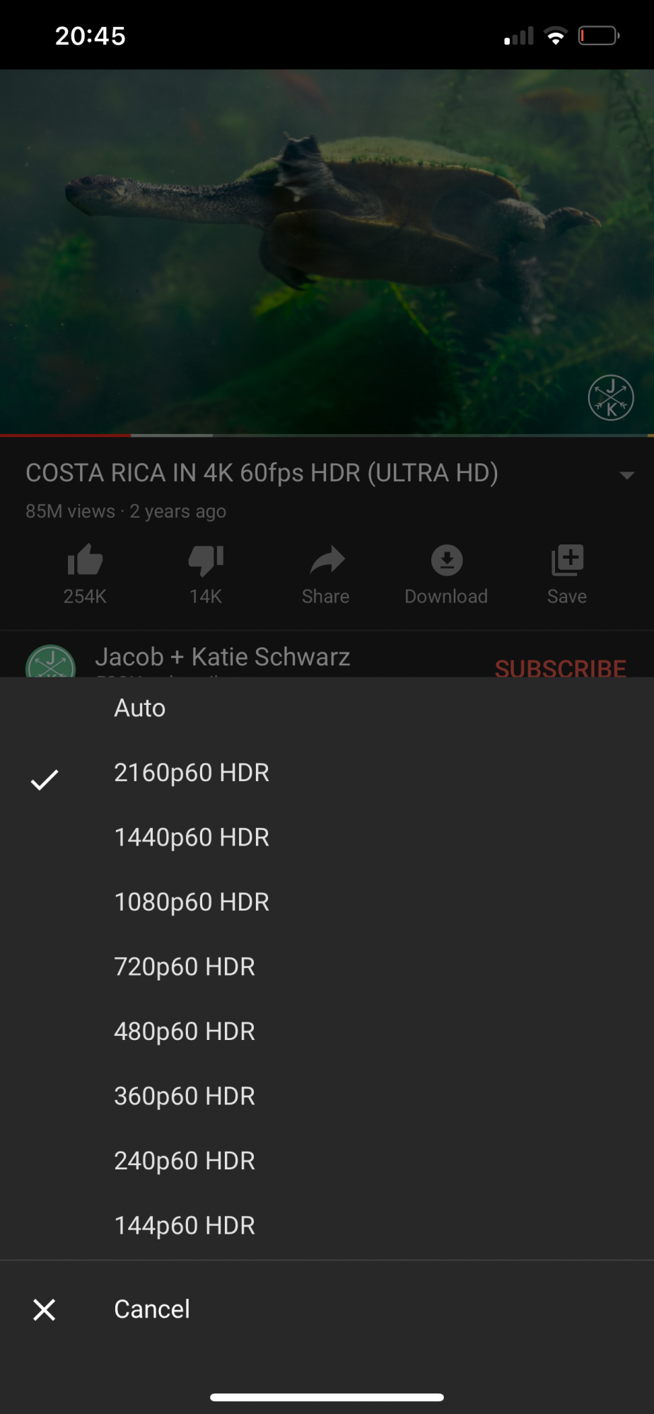 Yeah I'm running the iOS 14 betaAre you running iOS 14 beta? The best I can get is 1080P HDR in the YouTube app on iOS 13.5.1.