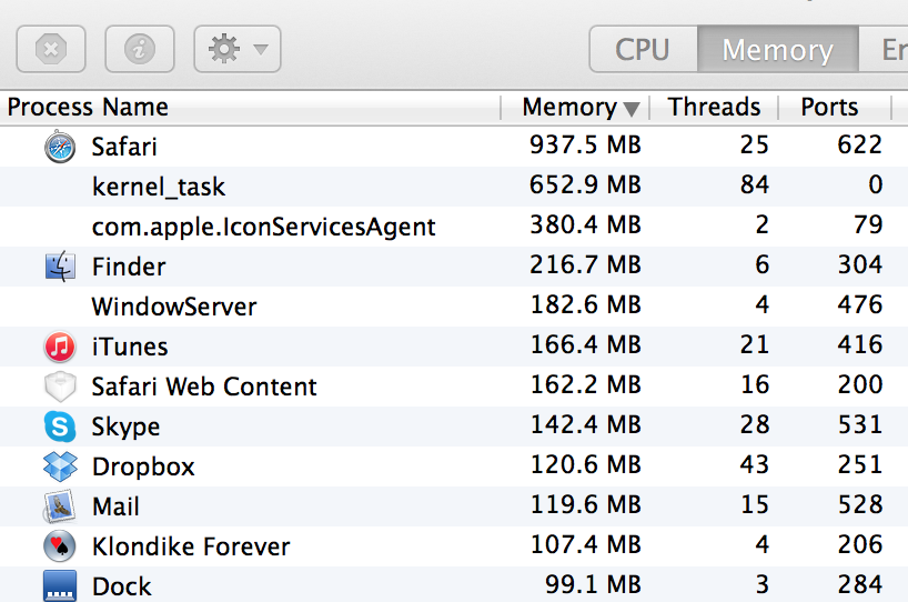 At this moment, I had Safari open since I first booted the machine (2011 MBAir). Only one tab (facebook) currently, the lateral bar with news and so on, etc.