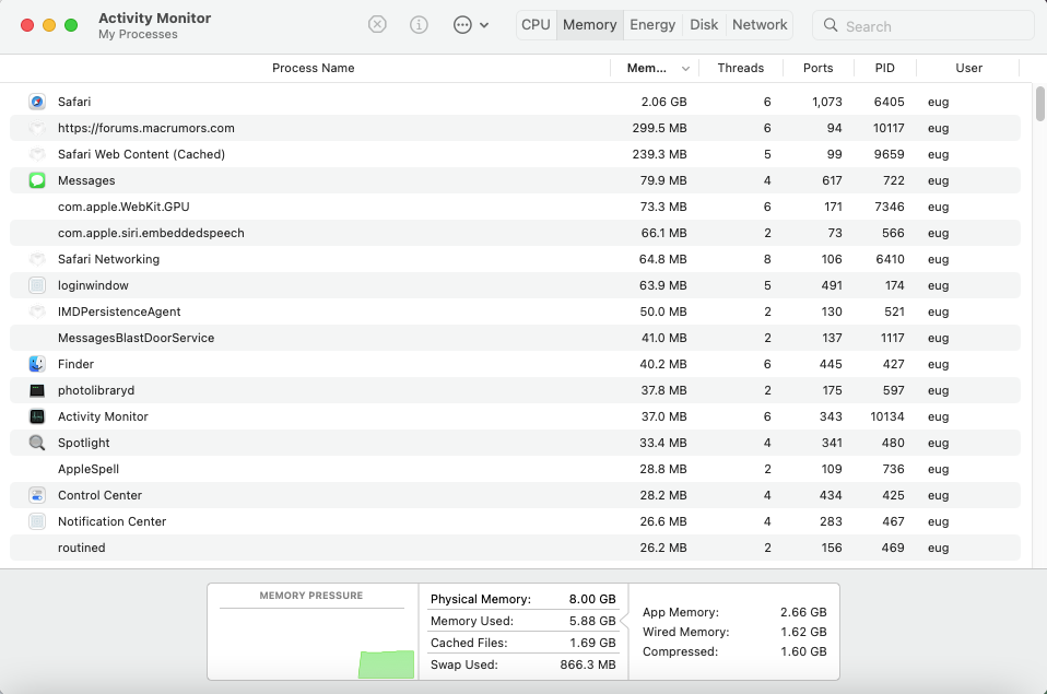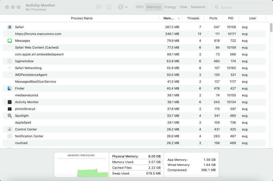 Is this a common issue or just me? 2014 Mac mini with 8 GB RAM and 512 GB NVMe SSD, running Monterey. I know 8 GB isn't a lot but my RAM usage is in the green and swap usage isn't particularly high.