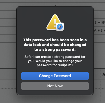 Hi, yesterday I have updated my Mac to Big Sur and today, after logging to my university account with Safari I have seen this popup: This password has been seen in a date leak and should be changed to a strong password. [...]. I usually use the suggested strong password for every website, but for example on the University website I can't because I need to log in sometimes from a different computer. I will change it for sure, by the way, is it possible to know what "date leak" are safari talking about? Thank you!