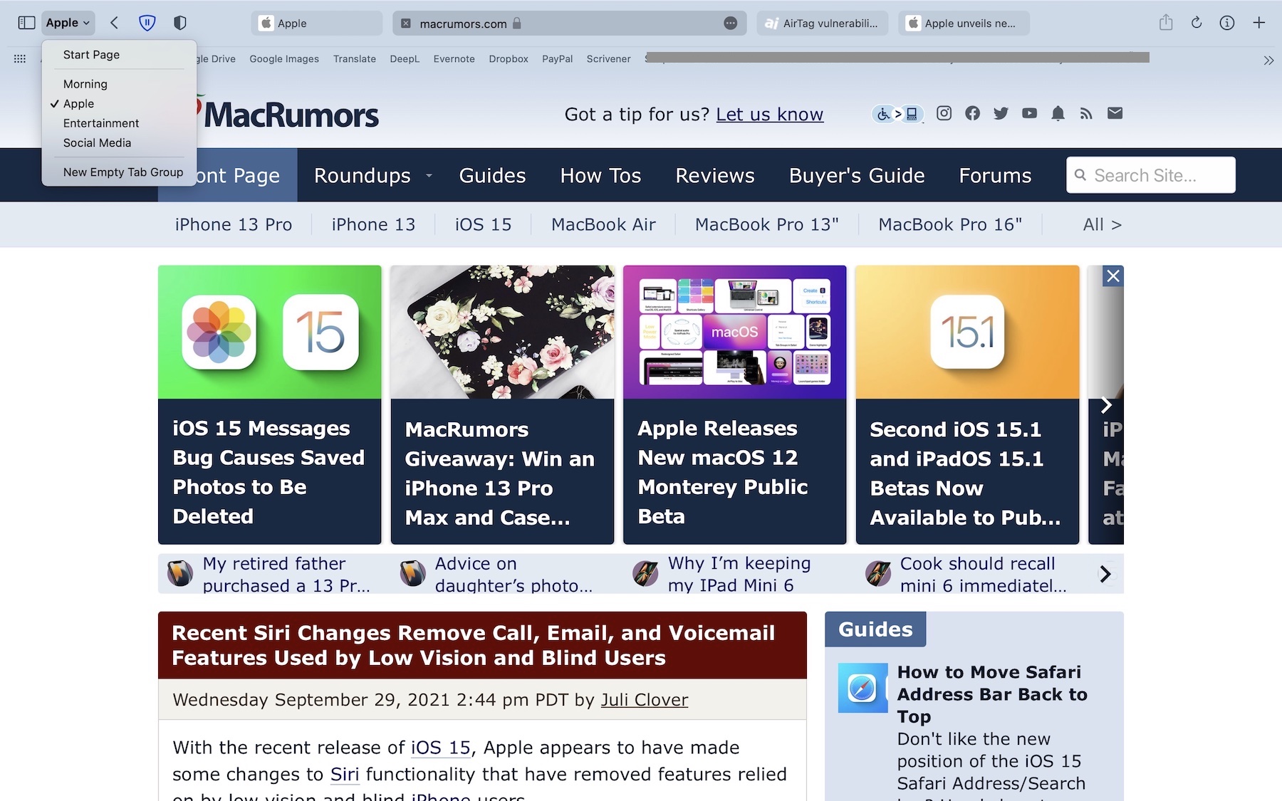 When people realize how tab groups make your browsing way easier and friction-free they will love the new design. Of course on Mac we can improve the original 15 design by having Sharing or Refresh button permanently so it isn't disastrous like the first iOS 15 beta.