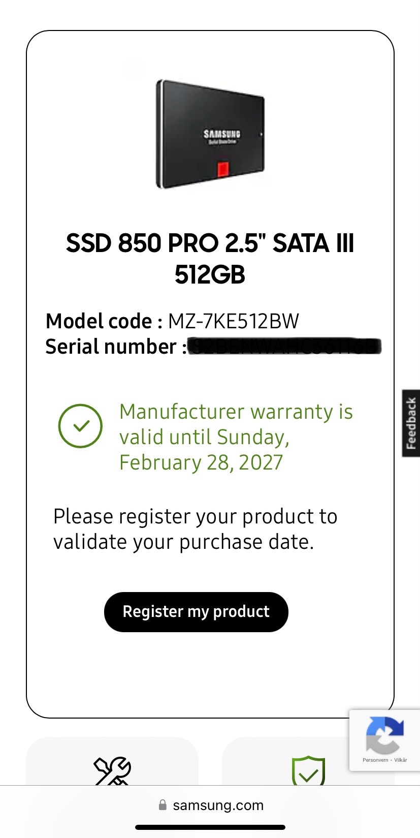 It doesn't matter since you won't have the original receipt, but at least you just confirmed a few things. It was purchased several years after the drive was introduced to the market likely indicating a later manufacturing date and it wasn't used that heavily.Thank you! It seems the warranty has coverage until 2027. Should I register the SSD at Samsung maybe?