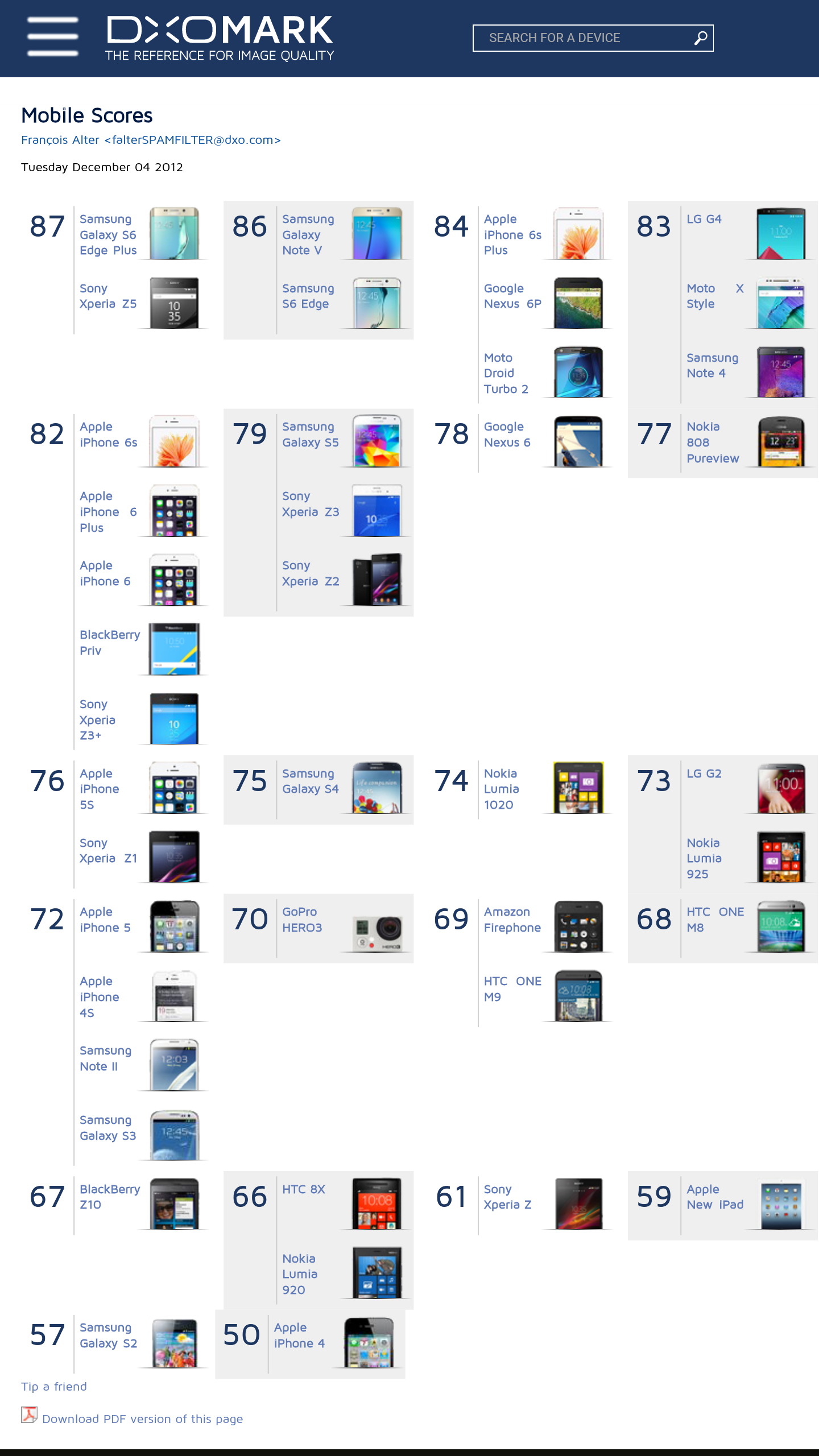 But not better than the iPhone 6S plusWow! Great to see my over a year old Galaxy Note 4 in the top 10, even ripping apart the latest overhyped "iSight" cameras.