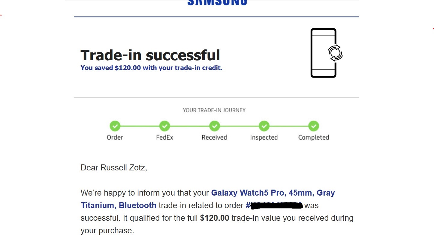 NiceI was worried that Samsung might reject my fitbit I sent in for a trade. It was in new condition (never really used by a family member). You can't power it off, so I charged it, packed it and sent it off that day. But got full credit for it as trade in. Shocking to say the least.