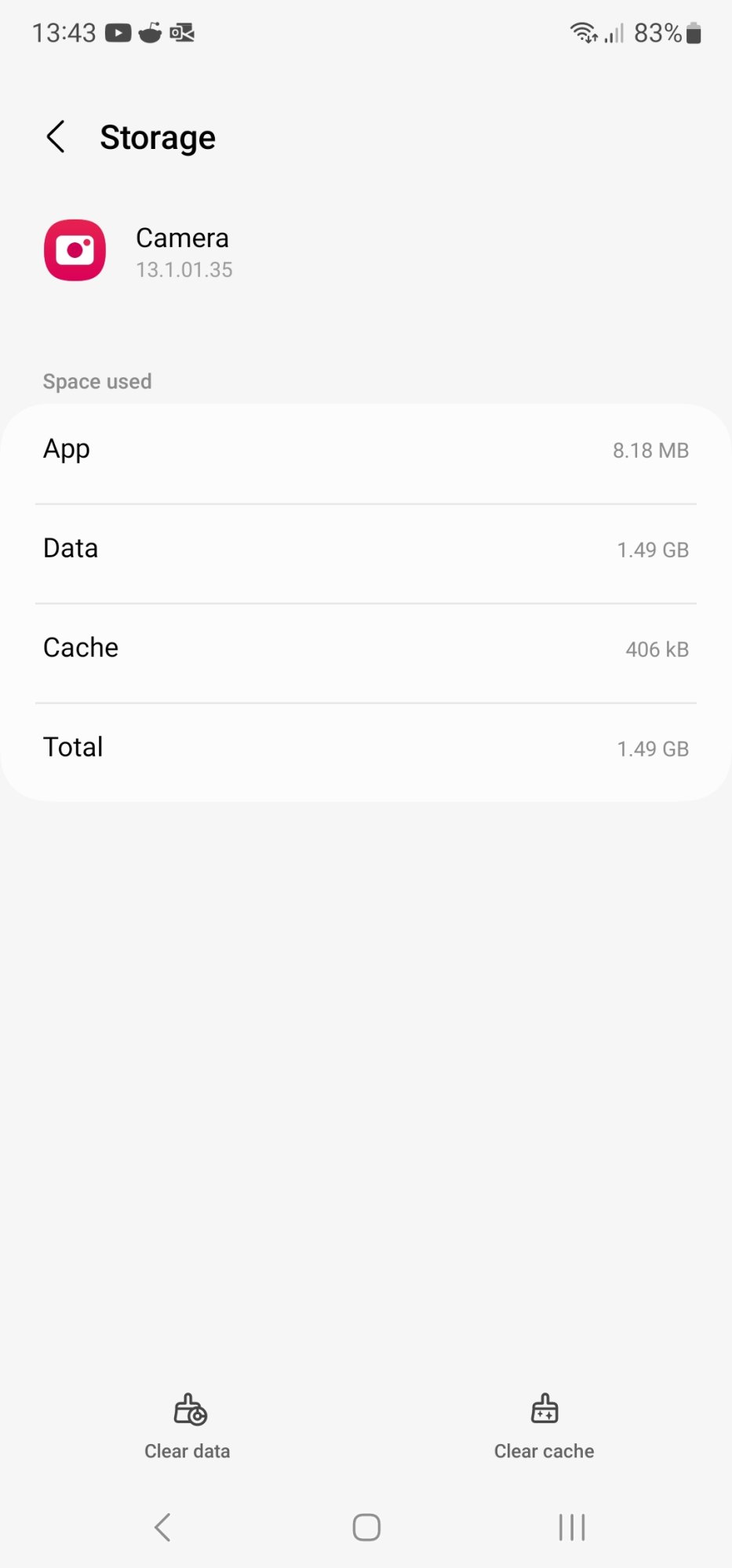 9.62mb on my s23 plus. Camera is still rubbish tho...Hello everyone. I have a quick question. After updating to the June update I noticed my camera app has 1.49gb of storage occupied. I never looked before updating so don't know what it was before. Please see attached pic. Is this normal? Can I clear data (not just cache)? If I do would that delete anything important?View attachment 2223301