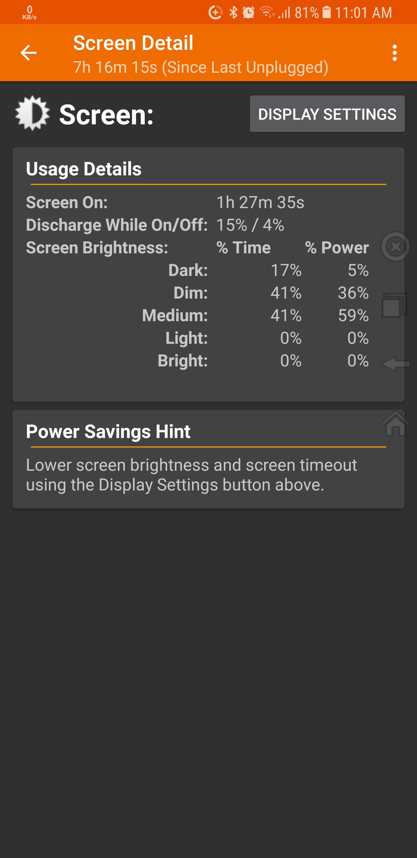 Currently have 39% left. Its been off charge for 8 hr 37 mins and SOT is 2 hr 14m