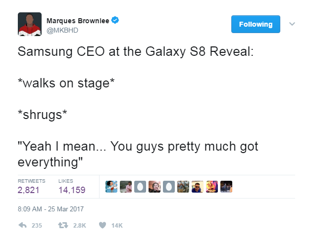 Well, got to play with the S8 today (not the plus model). I can confirm a few things. There are NO stereo speakers (like the iPhone 7 has. In other words, there is no sound generated from the earpiece. Only from the bottom speaker, but it is loud as fu....!)
